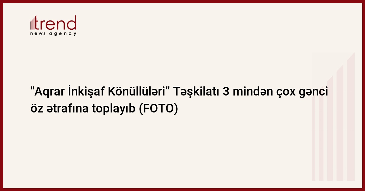 Qeyd edək ki, “Aqrar İnkişaf Könüllüləri” Təşkilatı 11 iyul 2018-ci ildən etibarən fəaliyyət göstərməyə başlayıb. Prezident İlham Əliyevin 24 yanvar 2019-cu ildə “Aqrar İnkişaf Könüllüləri” ilə görüşü baş tutub. Təşkilat 50 regionda fəaliyyət göstərərək, qısa müddət ərzində 3 mindən çox gənci öz ətrafına toplayıb. Aqrar sahənin kadr potensialının artırılması, fermerlərin maarifləndirilməsi, aqrar sahədə innovasiyaların tətbiqi və gənclərin marağının cəlb edilməsi istiqamətində ölkə miqyaslı 15 layihə icra olunub.