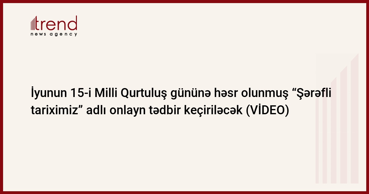 Azərbaycan Respublikası Dövlət Miqrasiya Xidməti, Azərbaycan Respublikasının Gənclər Fondu və Azərbaycan Könüllülərinin Əlaqələndirmə Mərkəzinin birgə təşəbbüsü ilə 15 iyun saat 14:00-da Milli Qurtuluş gününə həsr olunmuş “Şərəfli tariximiz” adlı onlayn tədbir keçiriləcək.