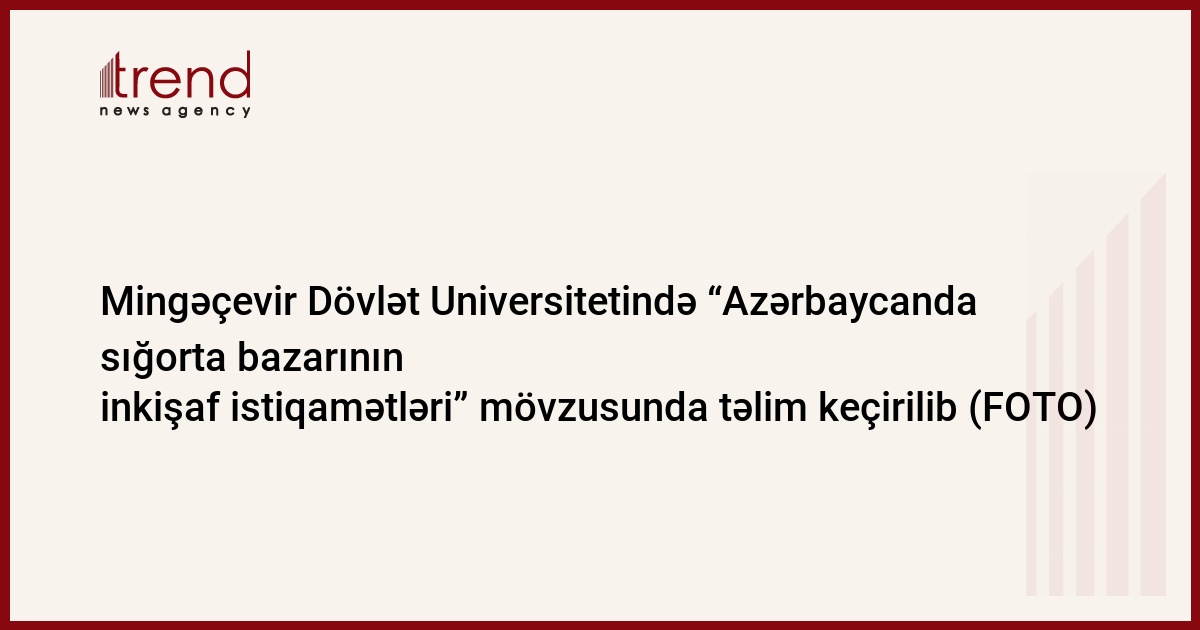 Universitetdən Trend-ə verilən məlumata görə, təlim Azərbaycan Respublikasının Təhsil Nazirliyinin “Sığorta sektorunun inkişaf etdirilməsi üçün görülməli işlərlə bağlı Tədbirlər Planı”nın icrası barədə 19 iyun 2019-cu il tarixli F-377 nömrəli əmrinin yerinə yetirilməsi üzrə Mingəçevir Dövlət Universitetinin Tədbirlər Planına uyğun olaraq təşkil olunub.