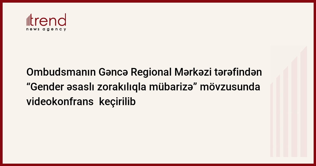 Ombudsmanın Gəncə Regional Mərkəzi tərəfindən Göygöl Rayon İcra Hakimiyyəti, Göygöl rayon Gənclər və İdman idarəsi, Ailə, Qadın və Uşaq Problemləri üzrə Dövlət Komitəsinin Göygöl rayon Uşaq və Ailələrə Dəstək Mərkəzi, Dini Qurumlarla İş üzrə Dövlət Komitəsinin Gəncə bölgəsi üzrə şöbəsinin əməkdaşlarının və fəal gənclərin iştirakı ilə “Gender əsaslı zorakılıqla mübarizə” mövzusunda hüquqi-maarifləndirici videokonfrans keçirilib.