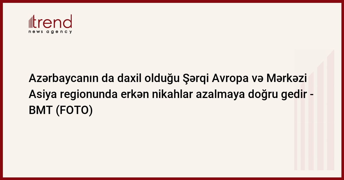 Azərbaycanın da daxil olduğu Şərqi Avropa və Mərkəzi Asiya regionunda erkən nikahlar əsasən qanunla qadağandır və bu hallar zəif sürətlə də olsa azalmaya doğru gedir. Buna baxmayaraq, regionun bəzi yerlərində erkən nikahlara hələ də geniş şəkildə rast gəlmək mümkündür.