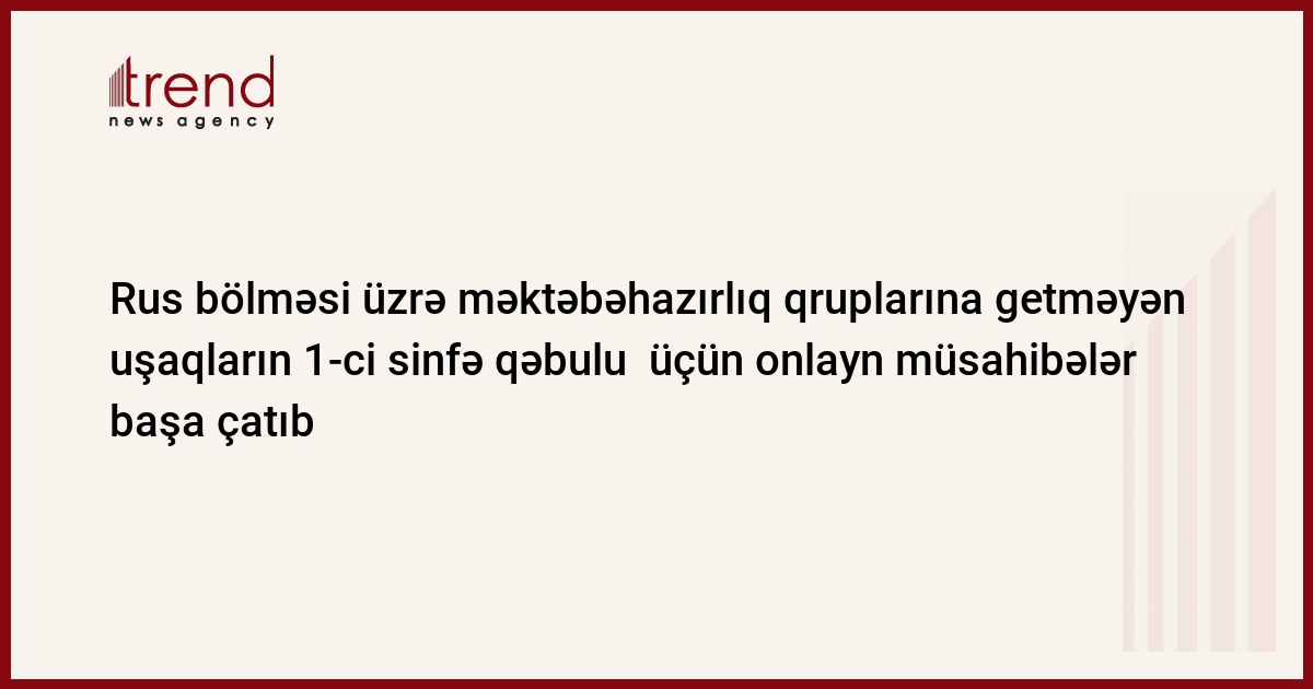 Bakı Şəhəri üzrə Təhsil İdarəsinin (BŞTİ) tabeliyindəki ümumi təhsil müəssisələrinin tədrisi digər dildə aparılan bölmələri üzrə məktəbəhazırlıq qruplarına cəlb edilməmiş uşaqların I sinfə qəbulu üçün təşkil olunmuş onlayn müsahibələr başa çatıb.