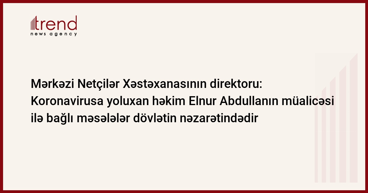 Qeyd edək ki, COVİD-19 infeksiyası ilə mübarizə aparan Mərkəzi Neftçilər Xəstəxanasının reanimatoloqu Elnur Abdulla özü də virusa yoluxduğundan bir neçə gün əvvəl xəstəxanaya yerləşdirilib.