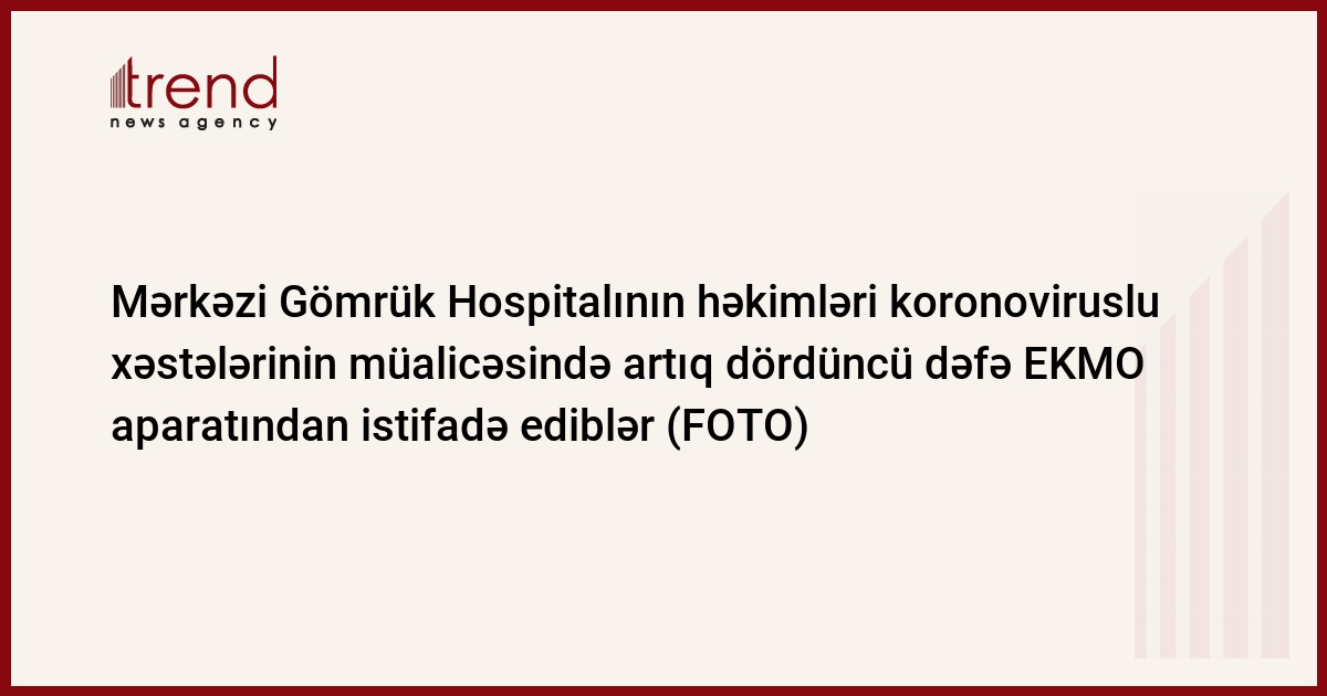 Xatırladaq ki, Azərbaycanda koronaviruslu xəstənin müalicəsində ekstrakorporal membran oksigenasiyası (EKMO) cihazı ilk dəfə məhz Mərkəzi Gömrük Hospitalında istifadə edilmişdir. Bu gün isə Hospitalın reanimasiya briqadası tərəfindən artıq dördüncü ağır koronaviruslu xəstə EKMO cihazına qoşulub.