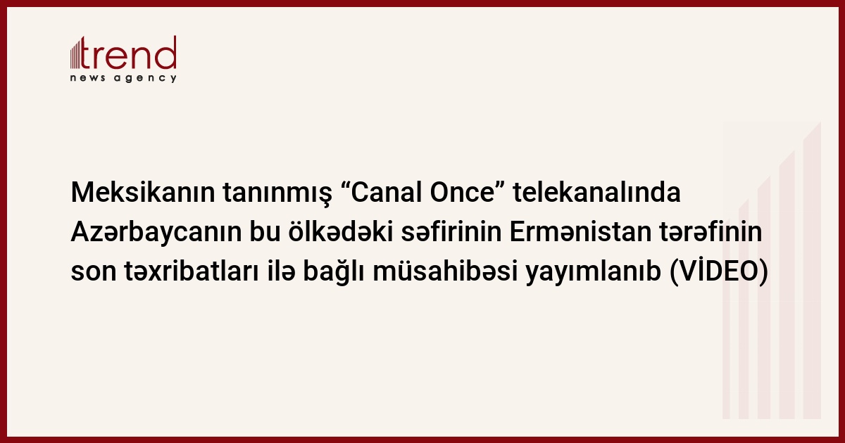 Meksikanın çoxmilyonlu izləyici kütləsinə malik ən qədim televiziya kanallarından olan “Canal Once” dövlət telekanalının “Xəbərlər” proqramında səfir Məmməd Talıbovun Ermənistanın son təxribatları ilə bağlı kanalın xarici siyasət üzrə tanınmış beynəlxalq şərhçisi Federiko Lamonta verdiyi müsahibə efirə gedib.