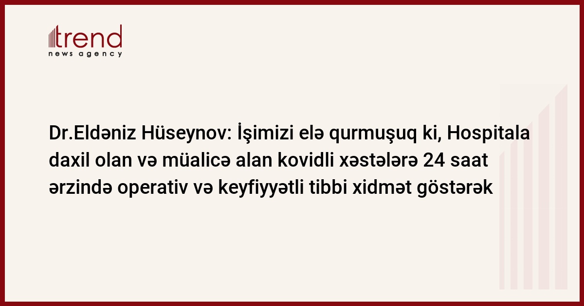 Dr.Eldəniz Hüseynov deyir: “COVİD-19 xəstələrində əsasən ağciyərlərinin zədələnməsinə görə, kompüter tomoqrafiyası və rentgen müayinələri əsas radioloji müayinələr olaraq ön plandadır. Rentgen və kompüter tomoqrafiyasının nəticələrinə əsaslanaraq xəstələrə dəqiq diaqnozun qoyulması müalicənin nəticəsinə birbaşa təsir edir. Buna görə də işimizi elə qurmuşuq ki, Hospitala daxil olan və müalicə alan kovidli xəstələrə 24 saat ərzində operativ və keyfiyyətli tibbi xidmət göstərək.”