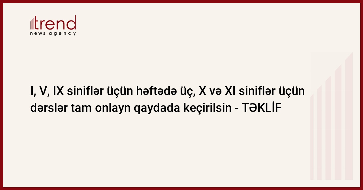 Orta məktəblərin I, V, IX sinifləri üçün həftədə üç dəfə, ara siniflər üçün həftədə iki dəfə tədrisi nəzərdə tutan cədvəllər hazırlasın, X və XI siniflərdə tədris tam onlayn qaydada təşkil edilsin.