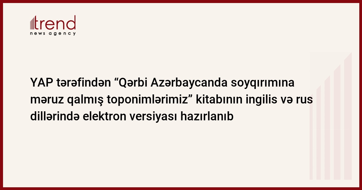 Qeyd edək ki, Yeni Azərbaycan Partiyası tərəfindən “Qərbi Azərbaycanda soyqırımına məruz qalmış toponimlərimiz” kitabının ingilis və rus dillərində elektron versiyası hazırlanmışdır. Kitabın ingilis və rus dillərində elektron versiyasının hazırlanması dünya ictimaiyyətinin tarixi həqiqətlərlə bağlı məlumatlandırılması və erməni yalanlarının ifşa edilməsi baxımından böyük əhəmiyyət kəsb edir.