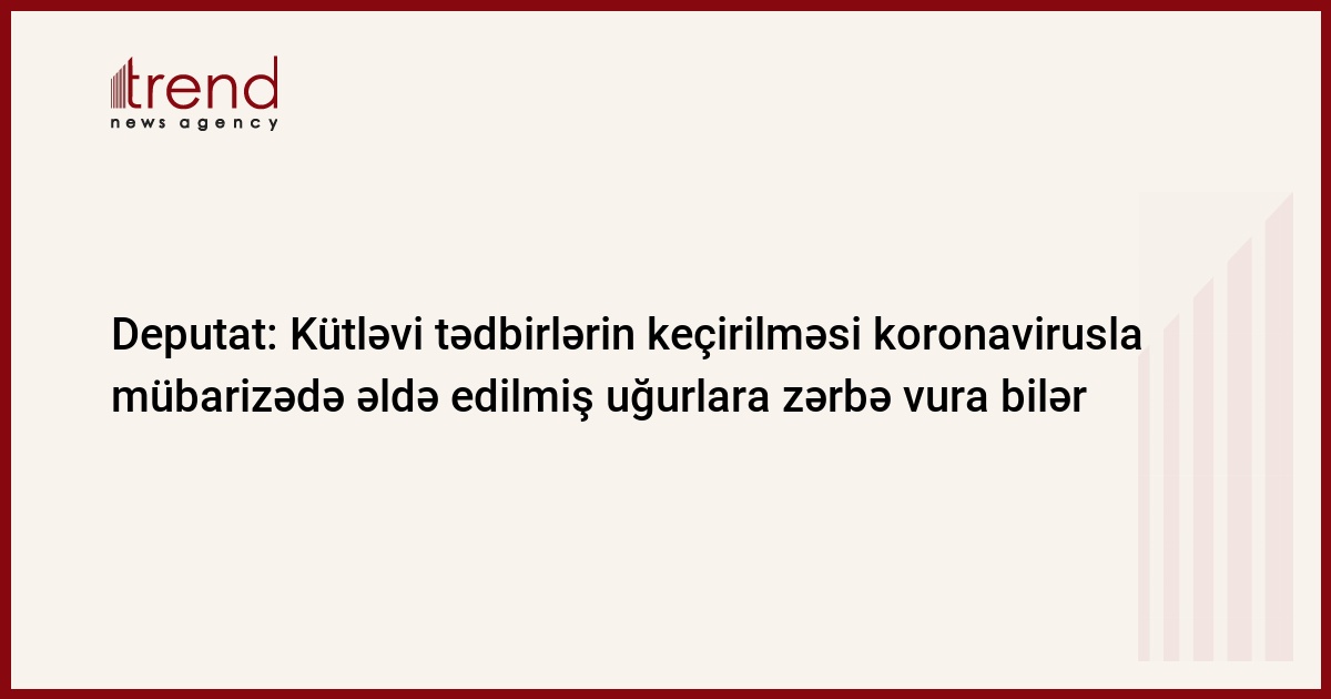 Deputat qeyd edib ki, koronavirusun mövcud olduğu son 5 ayın təcrübəsi göstərdi ki, insanların qapalı və açıq məkanlarda kütləvi şəkildə toplaşmağı virusun yayılmasına təkan verən ən əsas məqamdır.