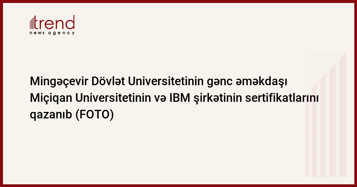 Univeristetdən Trend-ə verilən məlumata görə, MDU-nun gənc əməkdaşı Elçin Tağıyev ABŞ-ın nüfuzlu ali təhsil müəssisələrindən biri olan Miçiqan Universitetinin (University of Michigan) “Proqramlaşdırma” (Programming) mövzusunda keçirilən təlim kursunda uğurla iştirak edib. Dünyanın qabaqcıl Coursera online təhsil platformasında təqdim olunan 7 həftəlik kursda iştirakın əsas məqsədi Python proqramlaşdırma dilinin əsaslarını öyrənmək, müxtəlif alqoritmik məsələləri bu proqramlaşdırma dilindən istifadə etməklə həll etmək və müvafiq praktiki nümunələrin tədbiq edilməsini mənimsəməkdən ibarət olub.