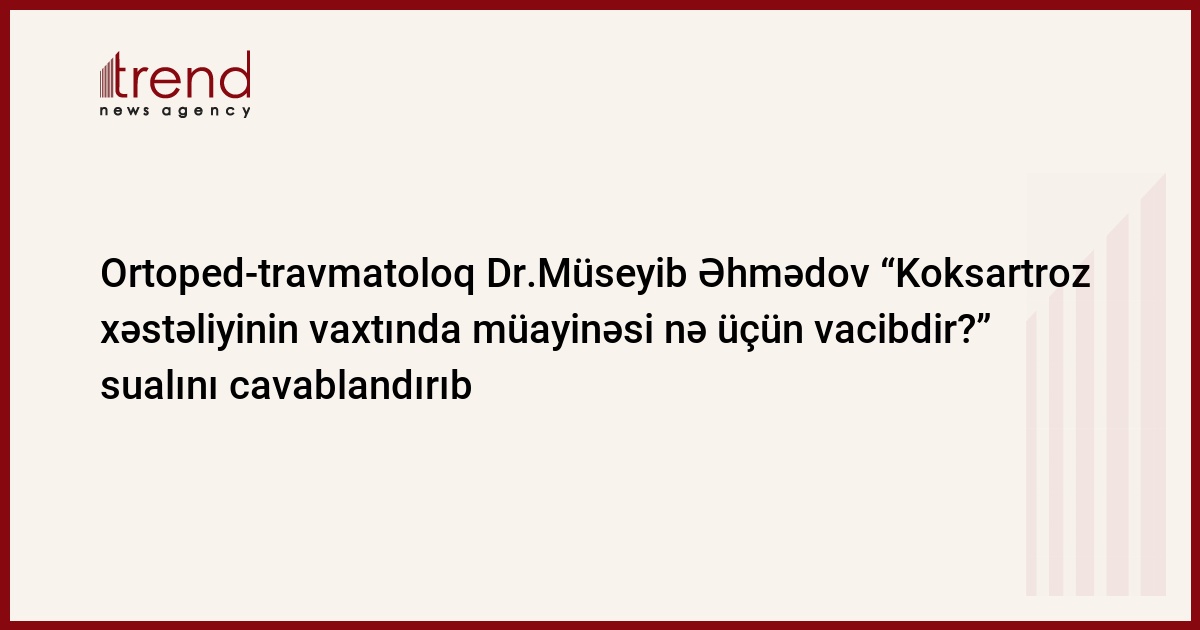 “Həkim məsləhəti” rubrikasında ortoped-travmatoloq Dr.Müseyib Əhmədov “Koksartroz xəstəliyinin vaxtında müayinəsi nə üçün vacibdir?” sualını cavablandırıb.