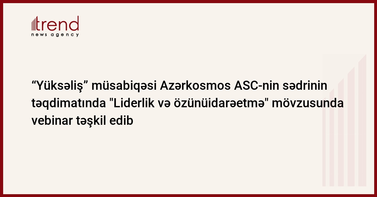 Sentyabrın 25-də “Yüksəliş” müsabiqəsinin İşçi Qrupu tərəfindən növbəti vebinar keçirilib. Vebinarda müsabiqənin İdarəçi Rəhbərlər heyətinin üzvü, Azərkosmos Açıq Səhmdar Cəmiyyətinin sədri Rəşad Nəbiyev "Liderlik və özünüidarəetmə" mövzusunda təqdimatla çıxış edib.