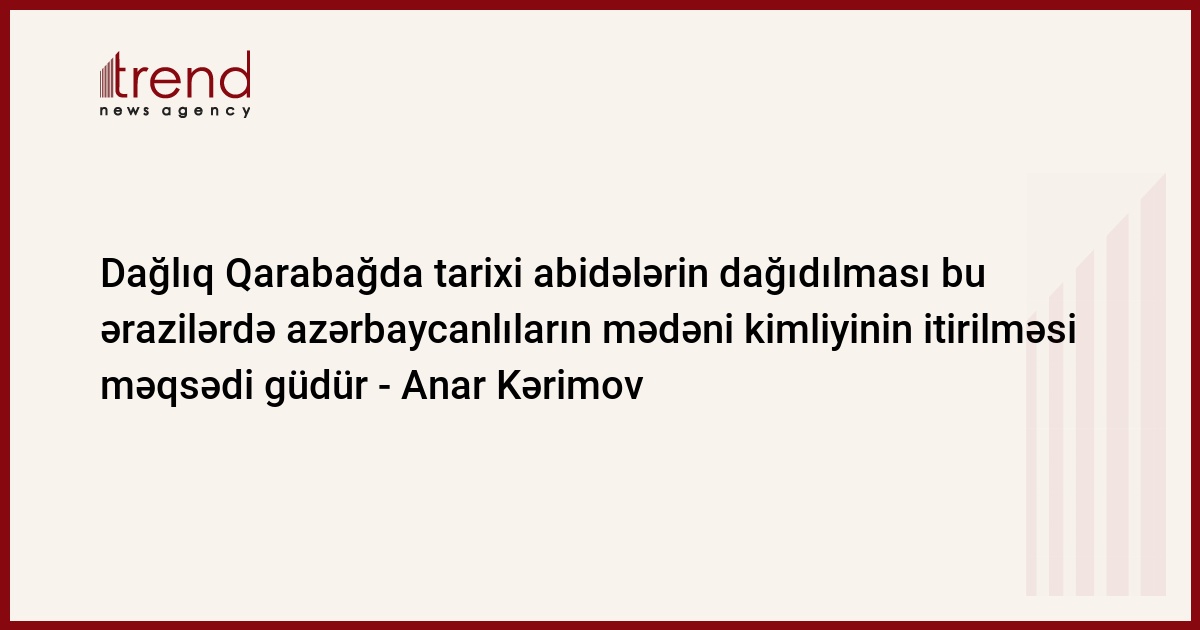 Dağlıq Qarabağda Azərbaycan icmasının əslərlə yaşamasına dəlalət edən tarixi abidələrin dağıdılması bu izləri itirmək, azərbaycanlıların mədəni kimliyinin ititilməsi məqsədi güdür.
