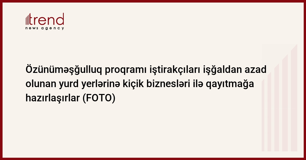 Müzəffər Azərbaycan Ordusunun erməni işğalından azad etdiyi ərazilərimizdən olan özünüməşğulluq proqramı iştirakçıları işğaldan azad olunan yurd yerlərinə kiçik biznesləri ilə qayıtmağa hazırlaşırlar