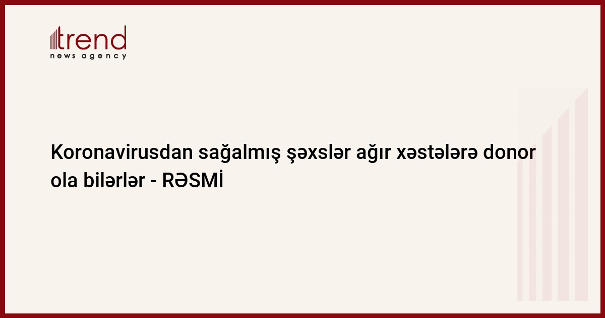 Koronavirus infeksiyasından sağalmış insanlar ağır xəstələrə donor ola bilərlər.