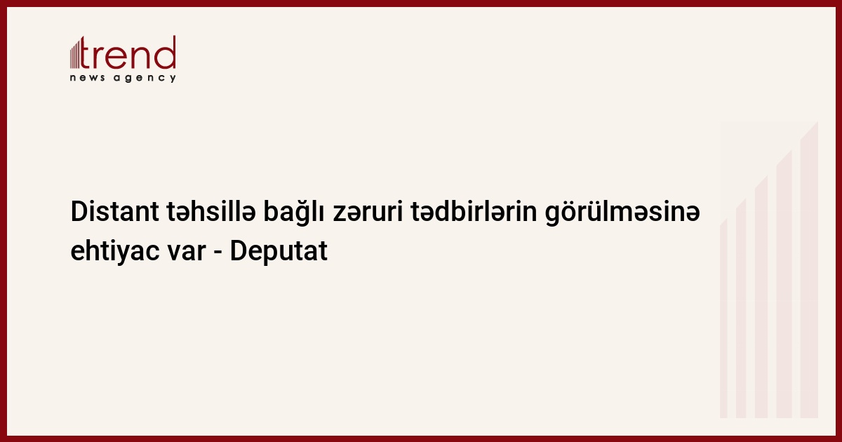 Azərbaycanda bütün şagirdlərin distant təhsilin imkanlarından istifadə edə bilməsi üçün zəruri tədbirlərin görülməsinə ehtiyac var. Bunu Trend-ə Milli Məclisin Elm və təhsil komitəsinin üzvü Afət Həsənova deyib.