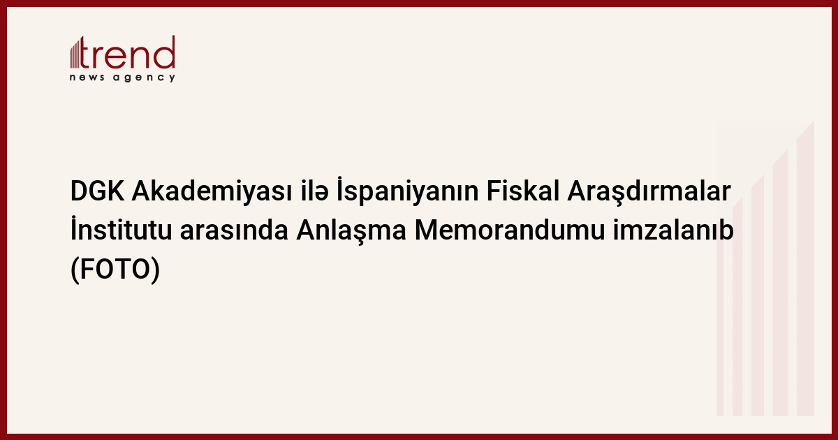 Noyabrın 26-da Azərbaycan Respublikası Dövlət Gömrük Komitəsinin Akademiyası (DGKA) ilə İspaniyanın Fiskal Araşdırmalar İnstitutu (IEF) arasında Anlaşma Memorandumunun imzalanması mərasimi keçirilib.