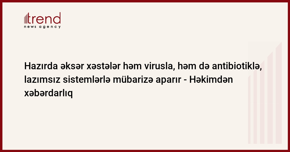 Onun sözlərinə görə, xəstəyə antibiotikin lazım olub-olmadığı müvafiq qan, yaxma və bəlğəm analizləri ilə təyin edilir. Bunlar olmazsa, yalnız ixtisaslaşmış həkim COVİD-19-un müalicəsi üçün antibiotikin lazım olub-olmadığını müəyyən edərək onu xəstəyə təyin edə bilər.