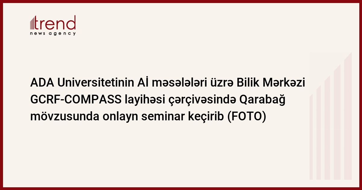 22-23 dekabr tarixlərində ADA Universitetinin Aİ məsələləri üzrə Bilik Mərkəzi “GCRF-COMPASS” layihəsi çərçivəsində onlayn seminar təşkil edib. “Qarabağ münaqişəsi və regional güc tarazlığına təsirləri” mövzusunda keçirilən seminar Qarabağ münaqişəsinin regiona təsirinə və 44 günlük müharibədən sonra regiondakı geosiyasi dəyişikliyin müzakirəsinə həsr olunub.