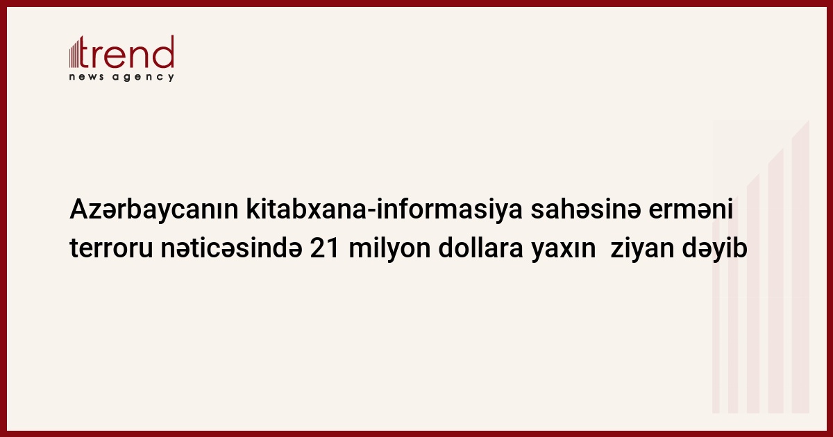 AMEA Əlyazmalar İnstitutunun doktorantı, AMEA Mərkəzi Elmi Kitabxanasının Biblioqrafiya şöbəsinin “Biblioqrafik vəsaitlərin hazırlanması” sektorunun müdiri Təranə Rüstəmova “Qarabağda Mərkəzləşdirilmiş Kitabxana Sistemlərinin yaranması tarixi və onların Ermənistan dövləti tərəfindən məhv edilməsi” məruzəsi ilə çıxışı zamanı arxiv və kitabxanaların məhv edilməsinin erməni vəhşiliyinin əsasını təşkil etdiyini vurğulayıb. T.Rüstəmova erməni terrorçuları tərəfindən zəbt olunmuş qədim Azərbaycan torpaqları olan Dağlıq Qarabağ və ona bitişik rayonlarda 9 Mərkəzləşdirilmiş Kitabxana Sistemi, 927 kitabxana və orada saxlanılan 4,6 milyon nüsxə kitabın talan edildiyini, 13 dünya əhəmiyyətli (6 memarlıq və 7 arxeoloji), 292 ölkə əhəmiyyətli (119 memarlıq və 173 arxeoloji) və 330 yerli əhəmiyyətli (270 memarlıq, 22 arxeoloji, 23 bağ, park, monumental və xatirə abidələri, 15 dekorativ sənət nümunəsi) tarix və mədəniyyət abidələrinin işğal zonasında qaldığını qeyd edib. Təqribi hesablamalara görə, Azərbaycanın kitabxana-informasiya sahəsinə 20 milyon 815 min ABŞ dolları həcmində maddi ziyan dəydiyi vurğulanıb.