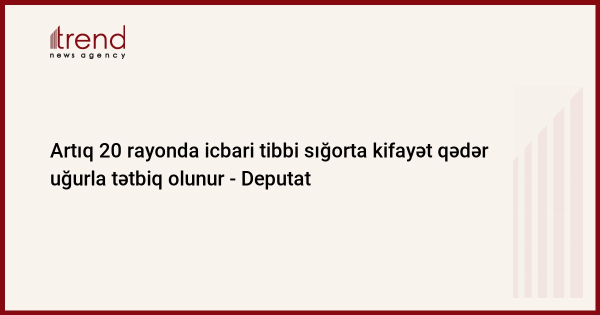 “Azərbaycan dövlətinin bu təşəbbüsü ölkəmizdə səhiyyə xidmətləri sahəsində çox mühüm dönüş yaradacaq. Artıq 20 rayonda icbari tibbi sığorta kifayət qədər uğurla tətbiq olunur. Bu rayonlarda səhiyyə xidmətlərindən vətəndaş məmnunluğunun yüksək olması yeni sistemə keçidin əhəmiyyətini düzgün qiymətləndirməyə əsas verir.
