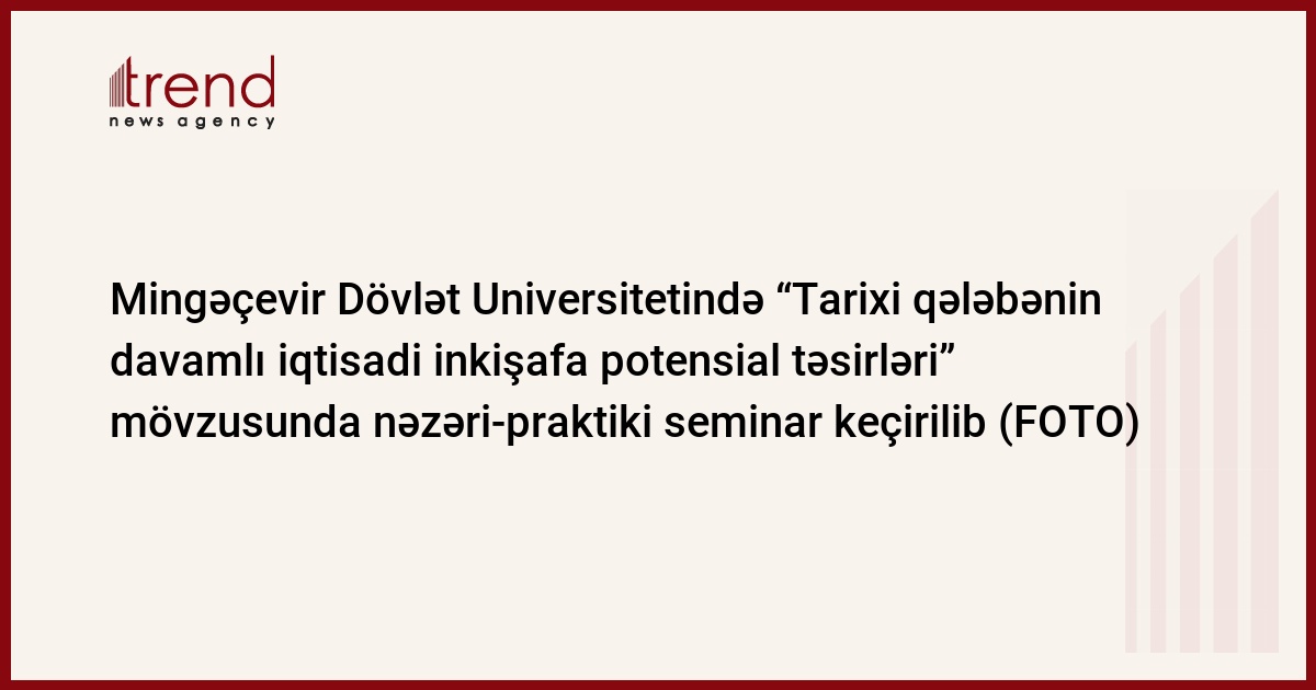 28 dekabr 2020-ci il tarixində Mingəçevir Dövlət Universitetində (MDU) “Tarixi qələbənin davamlı iqtisadi inkişafa potensial təsirləri” mövzusunda nəzəri-praktiki seminar keçirilib. Seminar MDU-nun “İqtisadiyyat” kafedrasının təşəbbüsü ilə təşkil olunub.