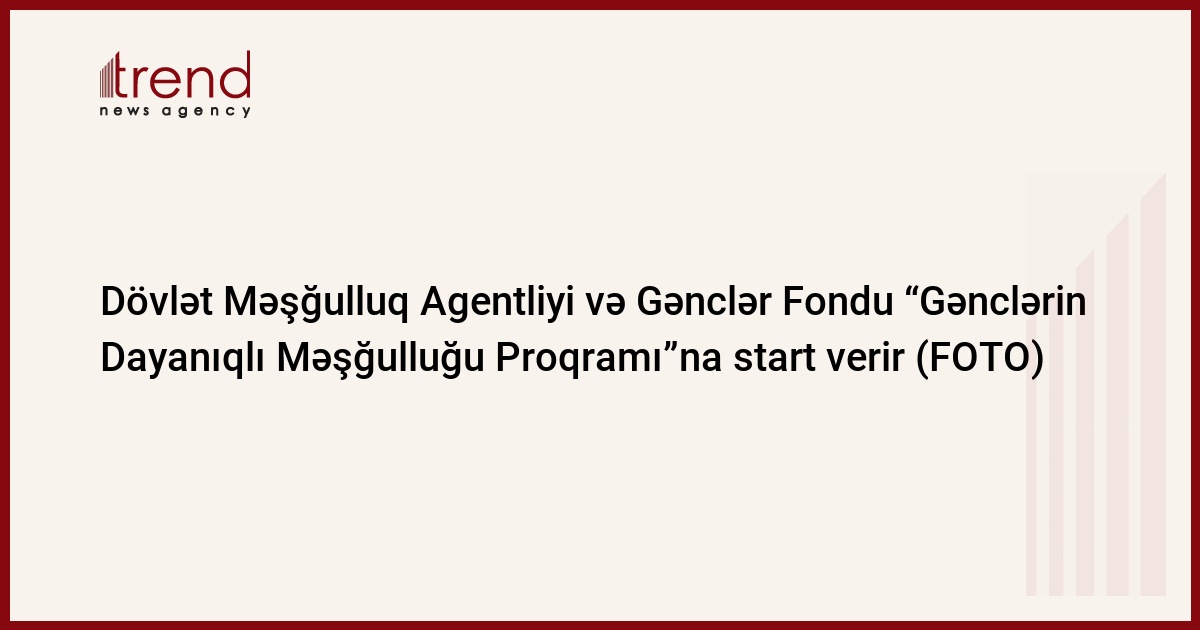 30 dekabr 2020-ci il tarixində Əmək və Əhalinin Sosial Müdafiəsi Nazirliyinin tabeliyində Dövlət Məşğulluq Agentliyi və Azərbaycan Respublikasının Gənclər Fondunun birgə icra etdiyi “Gənclərin Dayanıqlı Məşğulluğu Proqramı”nın onlayn formatda təqdimatı baş tutub.