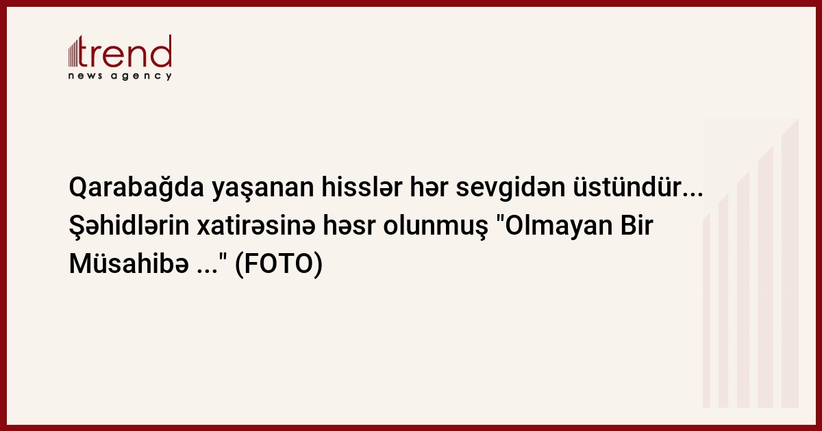 Azərbaycan yazıçısı Nərminə Məmmədzadə Trend Life-a ikinci Qarabağ müharibəsi şəhidlərinin xatirəsinə həsr olunmuş "Olmayan Bir Müsahibə ..." adlı silsilə materiallar təqdim edir.