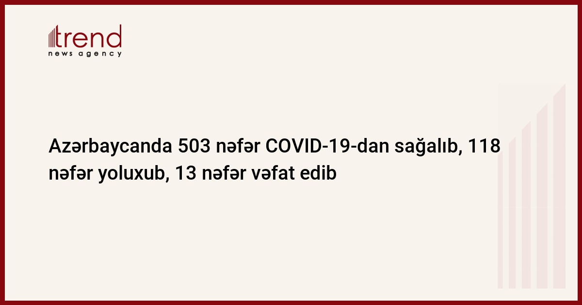 Azərbaycan Respublikasında koronavirus (COVID-19) infeksiyasına 118 yeni yoluxma faktı qeydə alınıb, 503 nəfər müalicə olunaraq sağalıb.