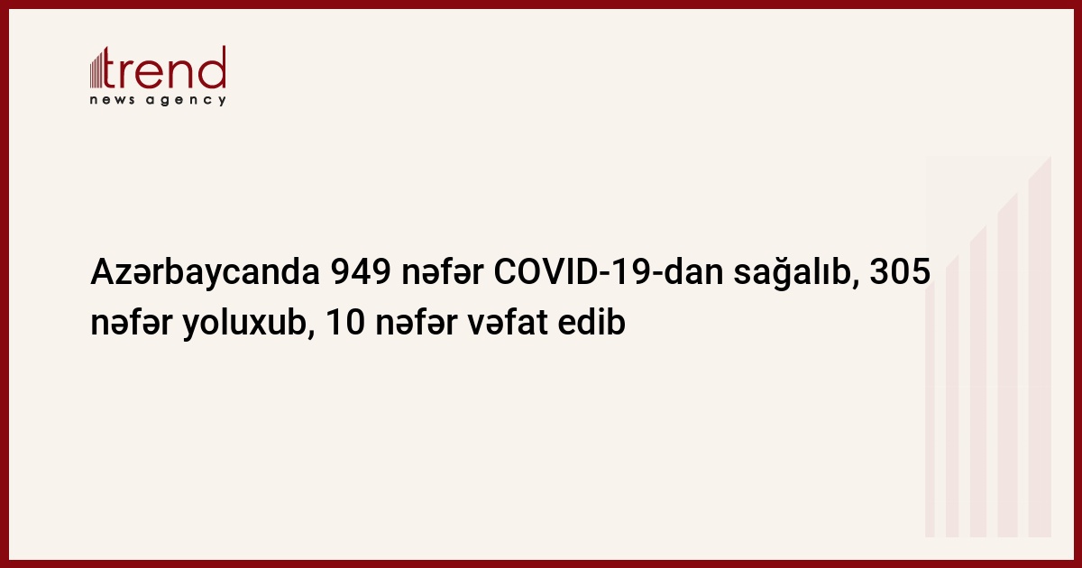 Azərbaycan Respublikasında koronavirus (COVID-19) infeksiyasına 305 yeni yoluxma faktı qeydə alınıb, 949 nəfər müalicə olunaraq sağalıb.