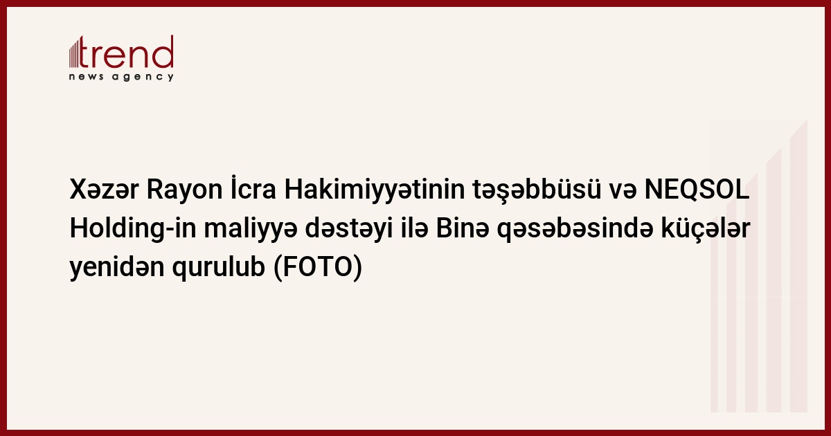 Binə qəsəbəsinin sosial-iqtisadi infrastrukturunun inkişafı məqsədi ilə Xəzər Rayon İcra Hakimiyyətinin təşəbbüsü və NEQSOL Holding-in maliyyə dəstəyi ilə müxtəlif işlər həyata keçirilir.