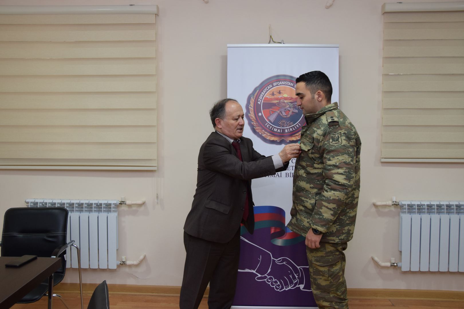 Respublika Veteranlar Təşkilatının və Əfqanıstan Veteranları İctimai Birliyinin birgə təşəbbüsü ilə Vətən müharibəsi iştirakçısı Azərbaycan Bayrağı ordenli Silahlı Qüvvələrin zabiti leytenant Abdulla Elşən oğlu Əliyev ilə görüş keçirilib.