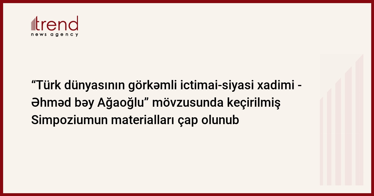 Azərbaycan İlahiyyat İnstitutu (Aİİ), Türk Ocaqları İstanbul şöbəsi, İstanbul Universiteti Türkiyat Araşdırmaları İnstitutu, Türk Əməkdaşlıq və Koordinasiya Agentliyinin (TİKA) birgə təşkilatçılığı ilə Türkiyə və Azərbaycanda “Türk dünyasının görkəmli ictimai-siyasi xadimi – Əhməd bəy Ağaoğlu” mövzusunda keçirilmiş Simpoziumun materialları dərc olunub.
