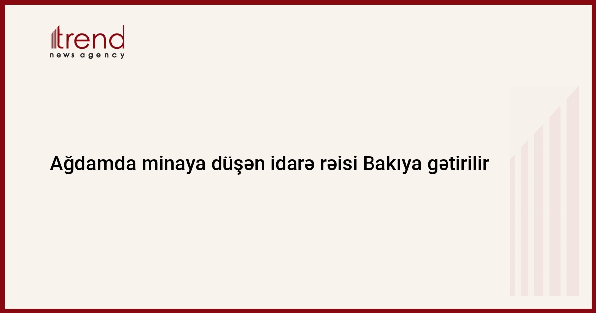 Ağdam rayonunun Novruzlu kəndində minaya düşən, Ağdam rayon Mexaniki Suvarma İdarəsinin rəisi Hafiz Əzimzadə Bərdə rayon Mərkəzi Xəstəxanasından köçürülüb.