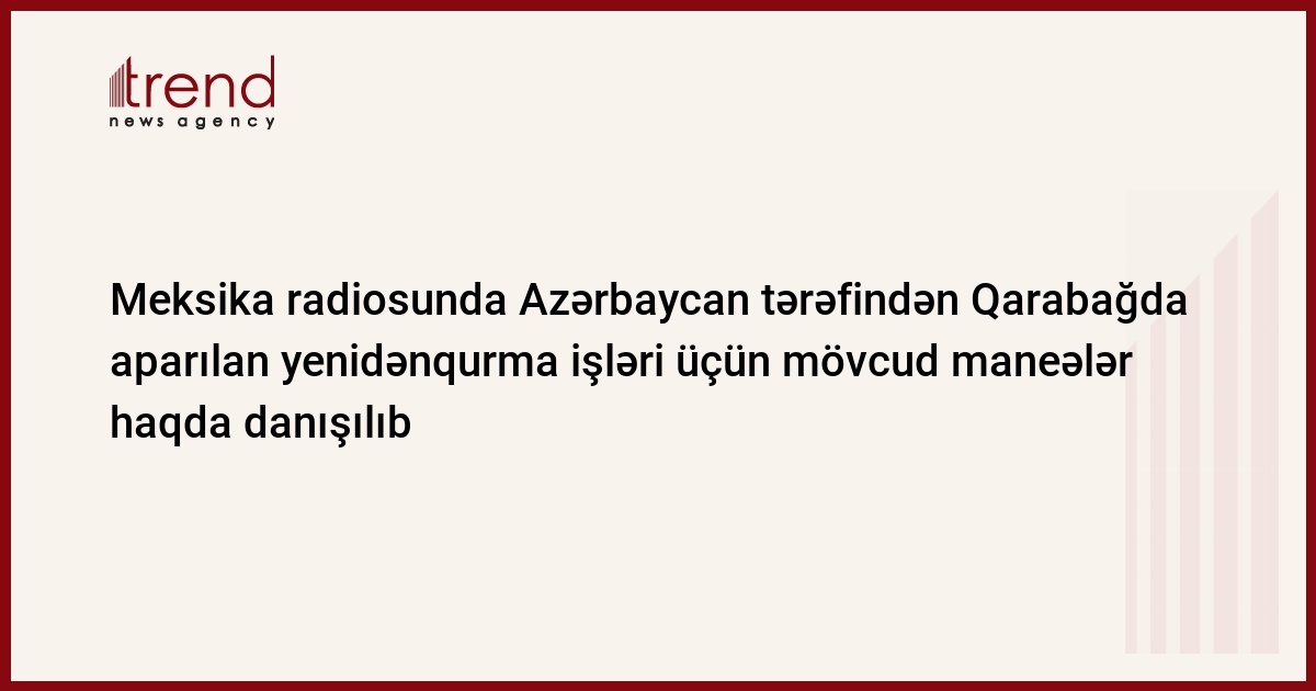 Meksika radiosunda Azərbaycan tərəfindən Qarabağda aparılan yenidənqurma işləri və məcburi köçkünlərin geri qayıtması üçün mövcud olan maneələr haqda danışılıb.