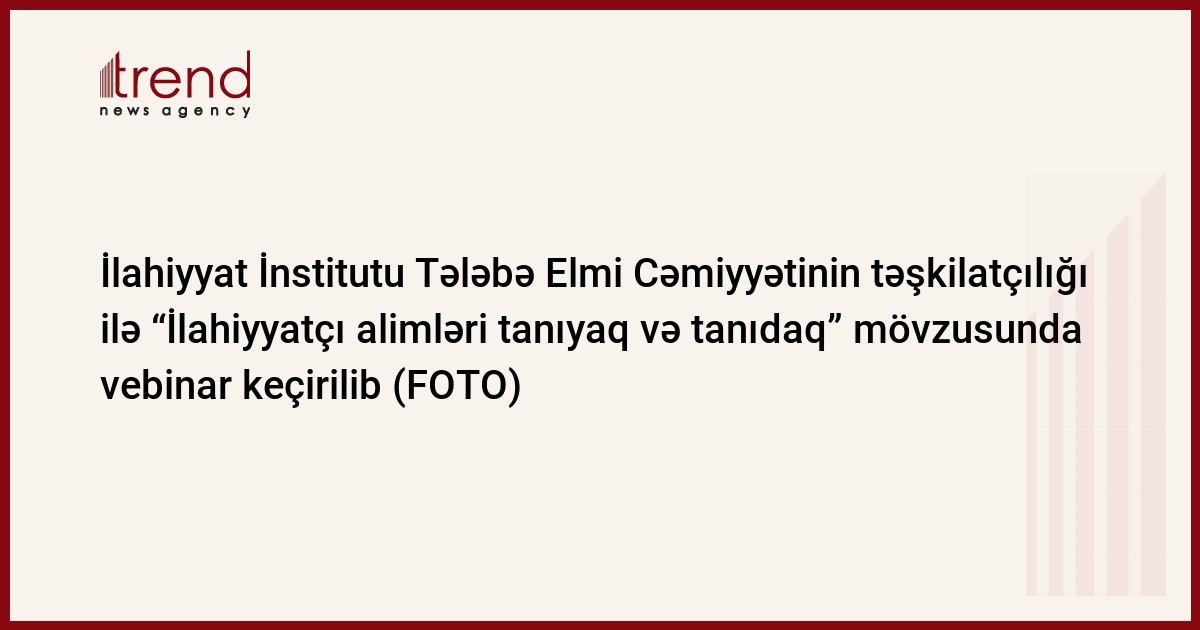 Azərbaycan İlahiyyat İnstitutu (Aİİ) Tələbə Elmi Cəmiyyətinin (TEC) təşkilatçılığı ilə “İlahiyyatçı alimləri tanıyaq və tanıdaq” mövzusunda vebinar keçirilib.