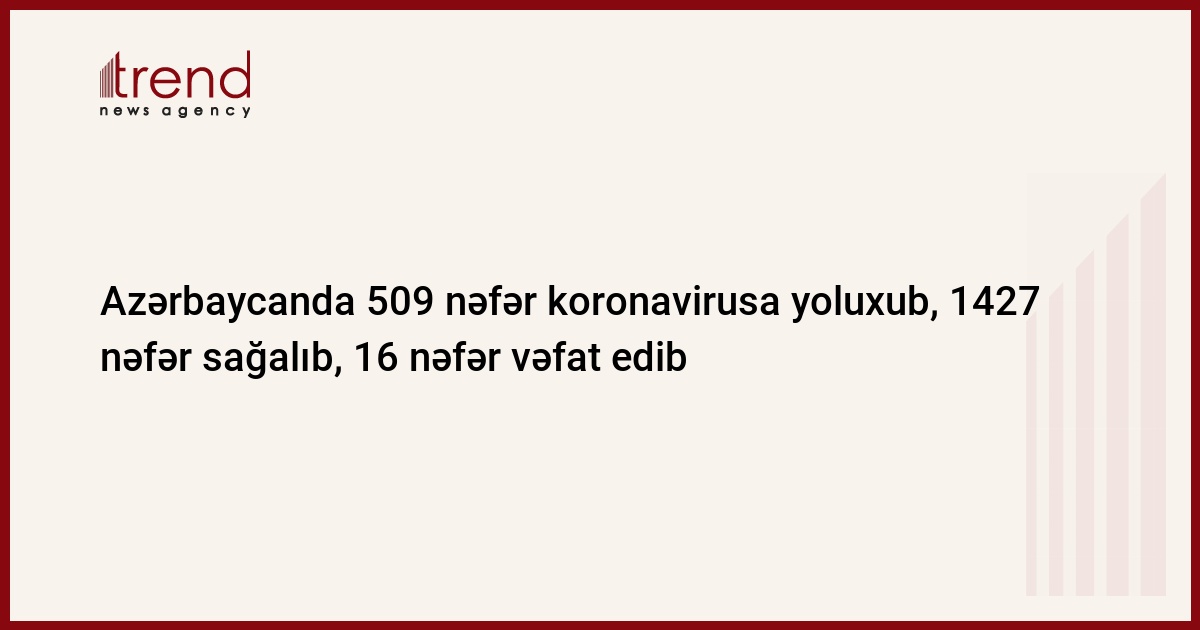 Azərbaycan Respublikasında koronavirus (COVID-19) infeksiyasına 509 yeni yoluxma faktı qeydə alınıb, 1427 nəfər müalicə olunaraq sağalıb.