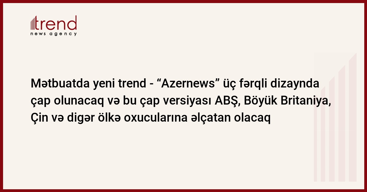 Bundan sonra qəzetin nömrələri üç fərqli müasir dizaynda nəşr olunacaq və ABŞ, Böyük Britaniya, Çin kimi dünyanın müxtəlif ölkələrində oxucular qəzeti bu yeni çap versiyasında oxuya biləcəklər.