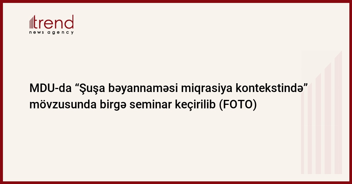 2021-ci ilin 23 iyun tarixində Mingəçevir Dövlət Universiteti (MDU) və Azərbaycan Respublikası Dövlət Miqrasiya Xidməti (DMX) Yevlax Regional Miqrasiya İdarəsinin birgə təşkilatçılığı ilə "Şuşa bəyannaməsi miqrasiya kontekstində" mövzusunda seminar keçirilib. “Microsoft Teams” platforması üzərindən onlayn formatda təşkil olunan birgə seminarda MDU-nun bir qrup akademik heyət üzvləri, tələbə və magistrantları iştirak ediblər.