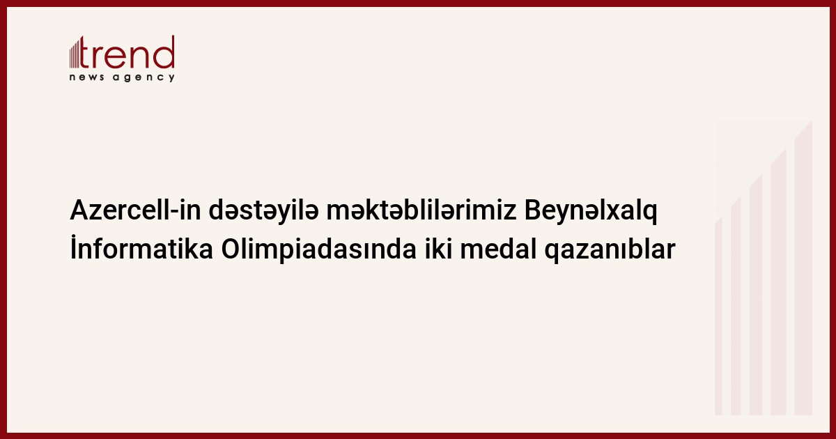 19-25 iyun 2021-ci il tarixlərində Sinqapurda təşkil olunan 33-cü Beynəlxalq İnformatika Olimpiadasında (IOI 2021 Singapore) Azercell-in dəstəklədiyi Azərbaycan komandasının üzvləri ölkəmizi növbəti dəfə uğurla təmsil edərək 2 bürünc medal qazanıblar.