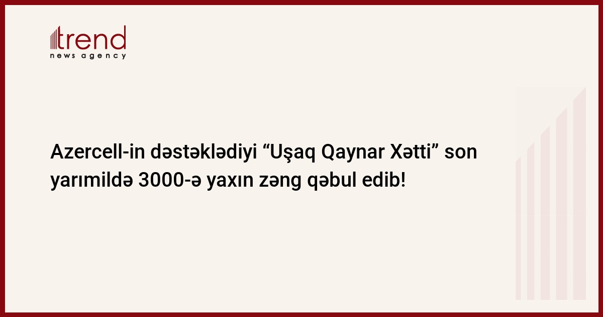 Ümumilikdə bu ilin ilk altı ayı ərzində “Uşaq Qaynar Xətt” xidmətinə 2761 zəng daxil olub. Bunların əksəriyyəti təhsil sahəsi (874 zəng), hüquqi (580 zəng), psixoloji (418 zəng), sosial (260 zəng), səhiyyə (172 zəng) və digər (457 zəng) sahələrə aid olub. 2020 zəng böyüklər, 621 zəng isə 18 yaşdan aşağı şəxslər tərəfindən daxil olub.