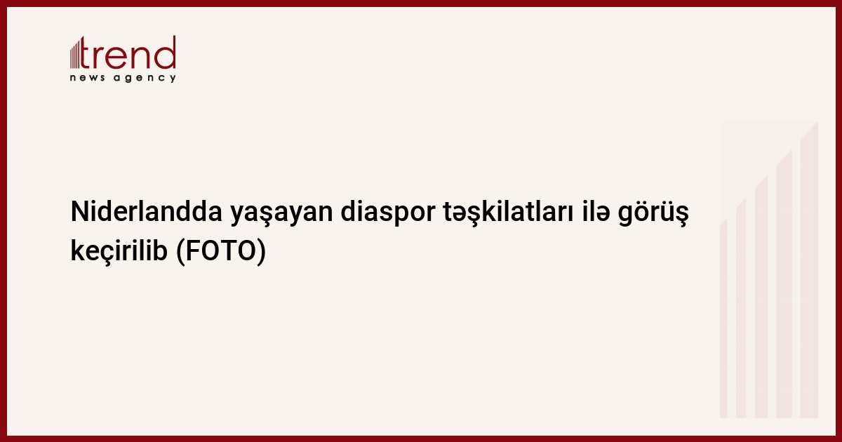 Diasporla İş üzrə Dövlət Komitəsindən Trend-ə verilən xəbərə görə,Rotterdamda fəaliyyət göstərən Benilüks Azərbaycanlıları Konqresində (BAK) və Haaqada yerləşən Hollanda–Azərbaycan Türk Kültür Dərnəyində görüşlər keçirilib.