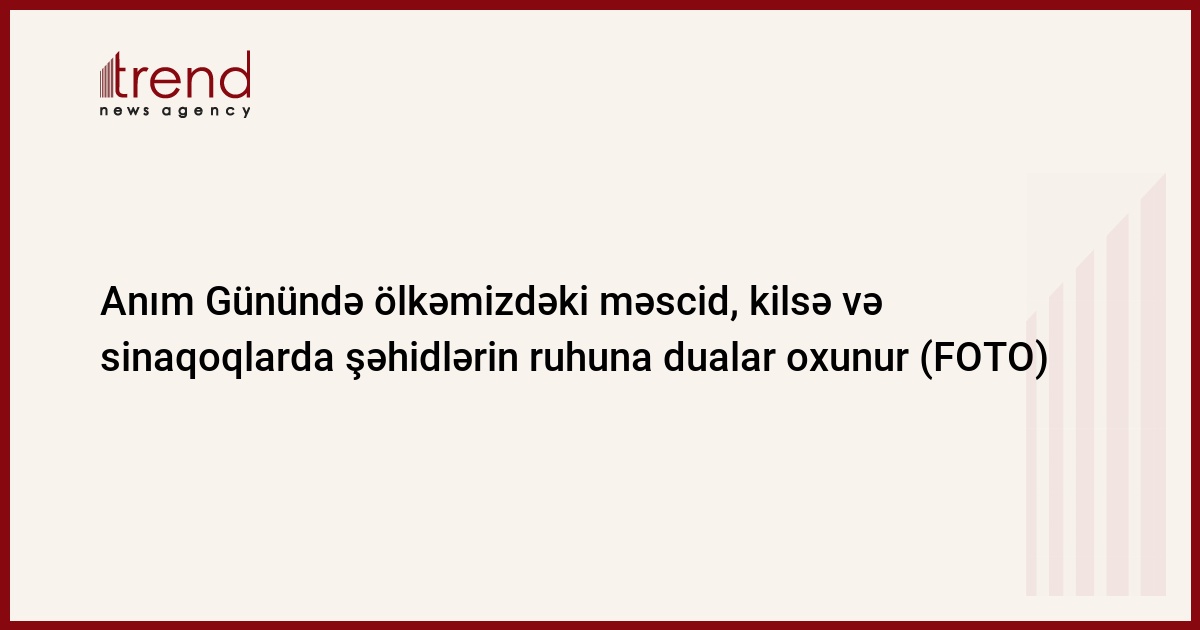 Trend-in məlumatına görə, şəhidlərimizin əziz xatirəsi Azərbaycanda fəaliyyət göstərən dini məbədlərdə - Heydər məscidində, Təzəpir məscidində, “Jen Mironosits” pravoslav kafedral kilsəsində, Bakının Avropa Aşkenazi Yəhudi Sinaqoqunda, Ağdam Cümə məscidində, Kəlbəcərdəki Xudavəng məbədində, Laçındakı Ağoğlan məbədində, Şuşadakı Yuxarı Gövhər Ağa məscidində və digər məscidlərdə, kilsələrdə, sinaqoqlarda dərin ehtiramla yad edilir, Azərbaycanın ərazi bütövlüyü uğrunda canından keçmiş Vətən övladlarının ruhuna dualar oxunur, dini ayinlər icra olunur, ölkəmizdə və bütövlükdə dünyada əbədi sülhün bərqərar olması üçün dualar edilir.