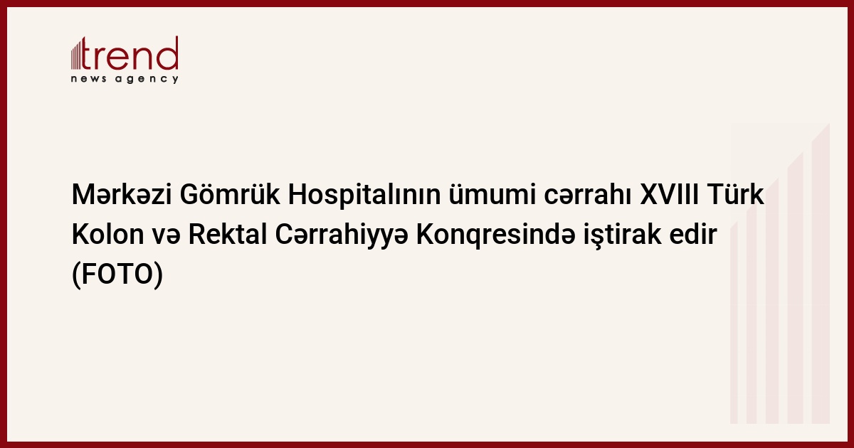 Mərkəzi Gömrük Hospitalının Cərrahiyyə şöbəsinin ümumi cərrahı, t.f.d. Aynur Səfiyeva 30 noyabr tarixindən 4 dekabr 2021-ci il tarixinə qədər Türkiyənin Antaliya şəhərində keçirilən XVIII Türk Kolon və Rektal Cərrahiyyə Konqresində, I Türkiyə Beynəlxalq Kolorektal Cərrahiyyə konqresində və XI Kolorektal Cərrahiyyə konqresində iştirak edir. Builki Konqres ilk dəfə olaraq beynəlxalq və ikidilli şəkildə təşkil edilmişdir. Konqresin üçüncü günü Dr.Aynur Səfiyevanın “Böyük olmayan kolorektal poliplərdə endoskopik müdaxilələr” mövzusunda təqdimatı maraqla qarşılanıb.
