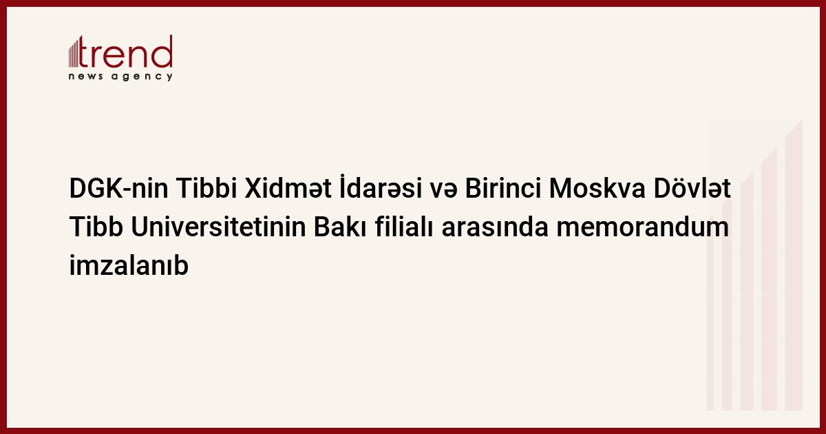 Azərbaycan Respublikası Dövlət Gömrük Komitəsinin Tibbi Xidmət İdarəsi və İ.M.Seçenov adına Birinci Moskva Dövlət Tibb Universitetinin Bakı filialı arasında tibbin müxtəlif sahələrini əhatə edəcək müştərək elmi tədqiqatların və beynəlxalq statuslu davamlı tibbi təhsil tədbirlərinin həyata keçirilməsi məqsədilə qarşılıqlı əməkdaşlıq memorandumu imzalanıb.