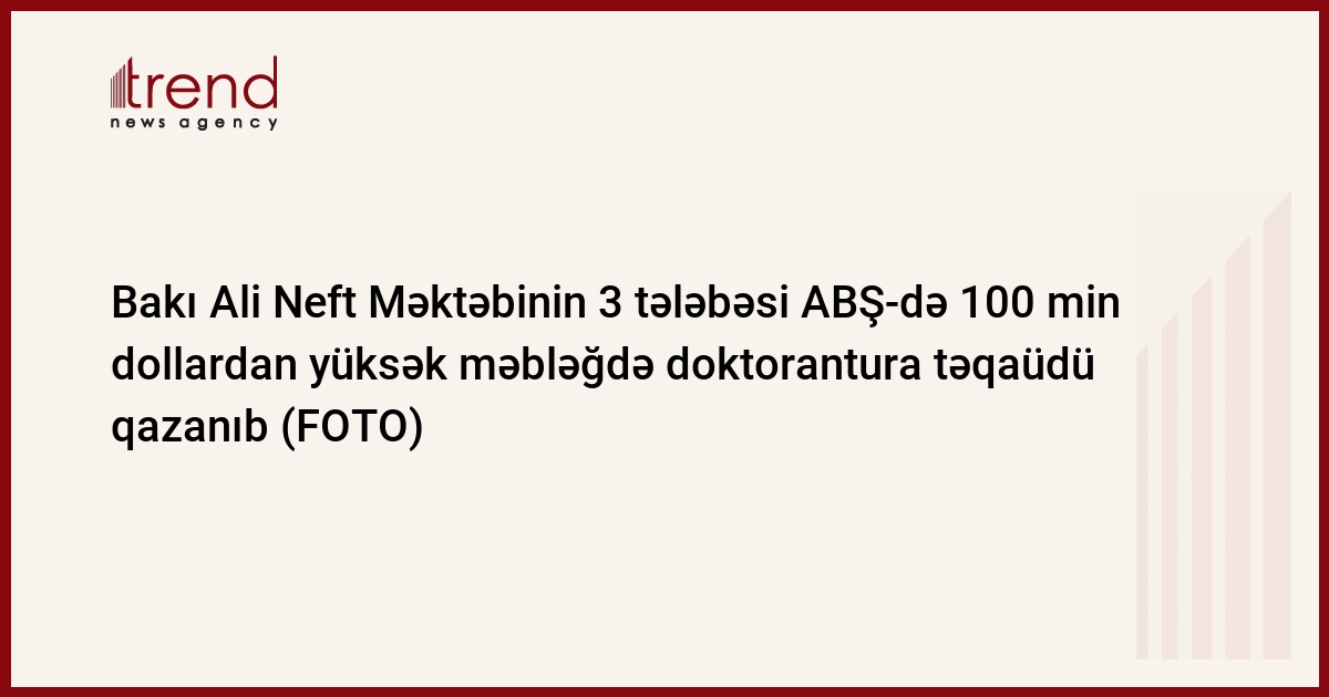 Bakı Ali Neft Məktəbinin (BANM) Proseslərin avtomatlaşdırılması mühəndisliyi ixtisasının V kurs tələbələri Xaqan Kərimov, Sənan Həsənov və İsa Cəfərov magistratura təhsili almadan birbaşa ABŞ-də tam təqaüdlə doktorantura pilləsinə qəbul olunublar. BANM tələbələrinin hər birinin ABŞ universitetlərindən qazandıqları təqaüdün məbləği 100 min ABŞ dollarından yüksəkdir. Onlar Kompüter elmləri ixtisasının kibertəhlükəsizlik istiqaməti üzrə təhsil alacaqlar.