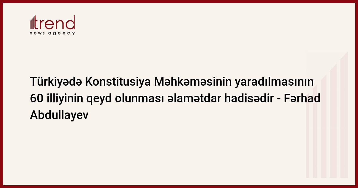 Trend xəbər verir ki, bunu Ankarada keçirilən "Əsas hüquq və azadlıqların müdafiəsində Konstitusiyanın şərhi" mövzusunda beynəlxalq simpoziumda iştirak edən Azərbaycan Respublikası Konstitusiya Məhkəməsinin sədri Fərhad Abdullayev AZƏRTAC-a açıqlamasında deyib.