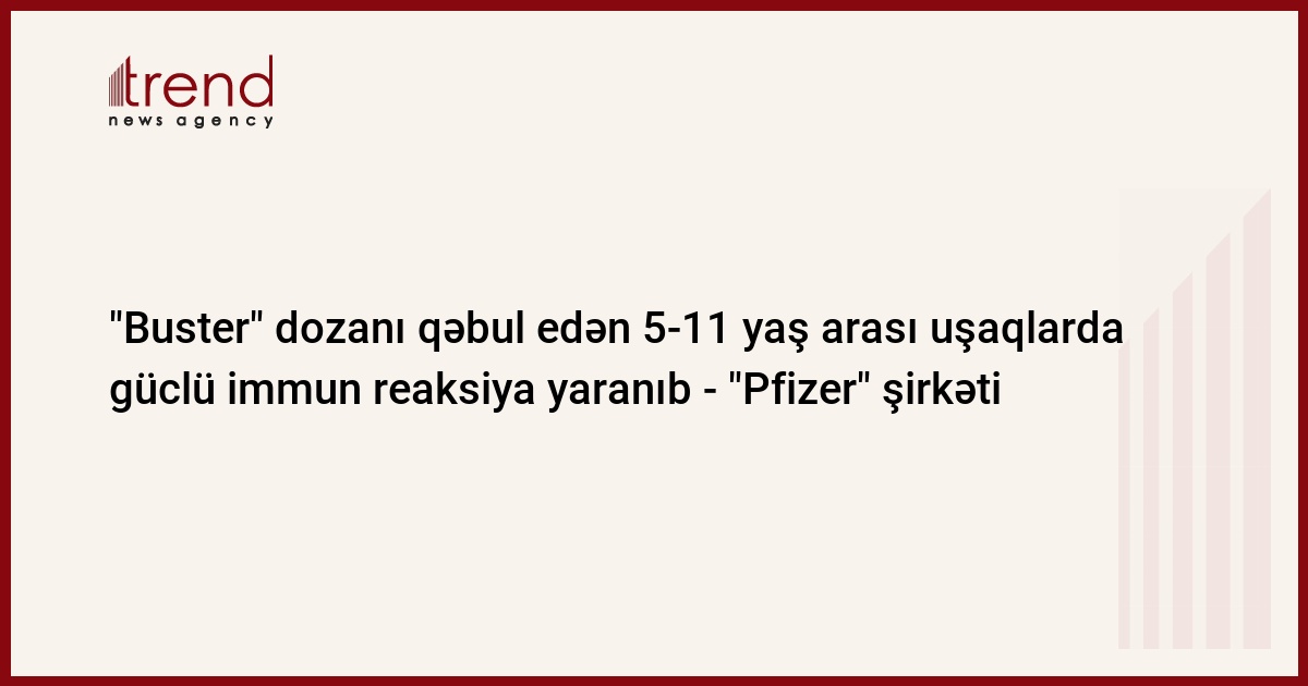 "Pfizer-BioNTech" konsorsiumu ABŞ-ın Qida məhsulları və dərmanların keyfiyyətinə sanitar nəzarət üzrə İdarəsinə (FDA) 5-11 yaş arası uşaqlarda koronavirus peyvəndinin "buster" dozasının təcili istifadəsinə razılıq verilməsi üçün sorğu göndərib.