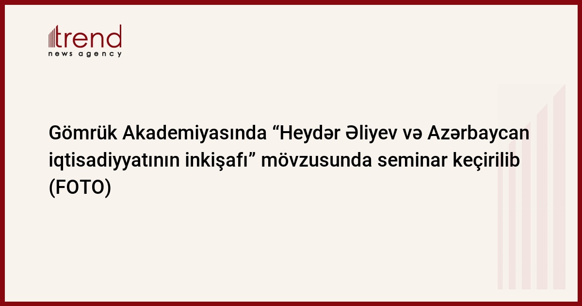 Dövlət Gömrük Komitəsinin Akademiyasında Ümummilli lider Heydər Əliyevin anadan olmasının 99-cu ildönümü münasibətilə təşkil edilən silsilə tədbirlər çərçivəsində “Heydər Əliyev və Azərbaycan iqtisadiyyatının inkişafı” mövzusunda seminar keçirilib.