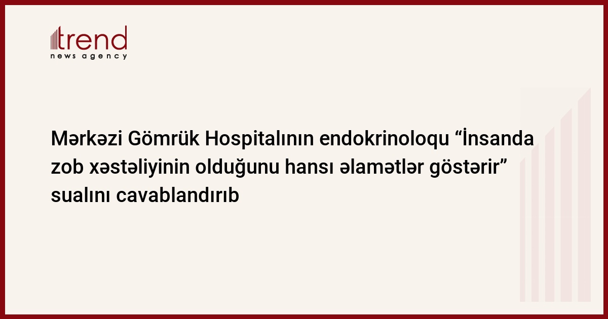 Mərkəzi Gömrük Hospitalının endokrinoloqu Şəbnəm Əlirzayeva “Həkim məsləhəti” rubrikasında “İnsanda zob xəstəliyinin olduğunu hansı əlamətlər göstərir” sualını cavablandırıb.